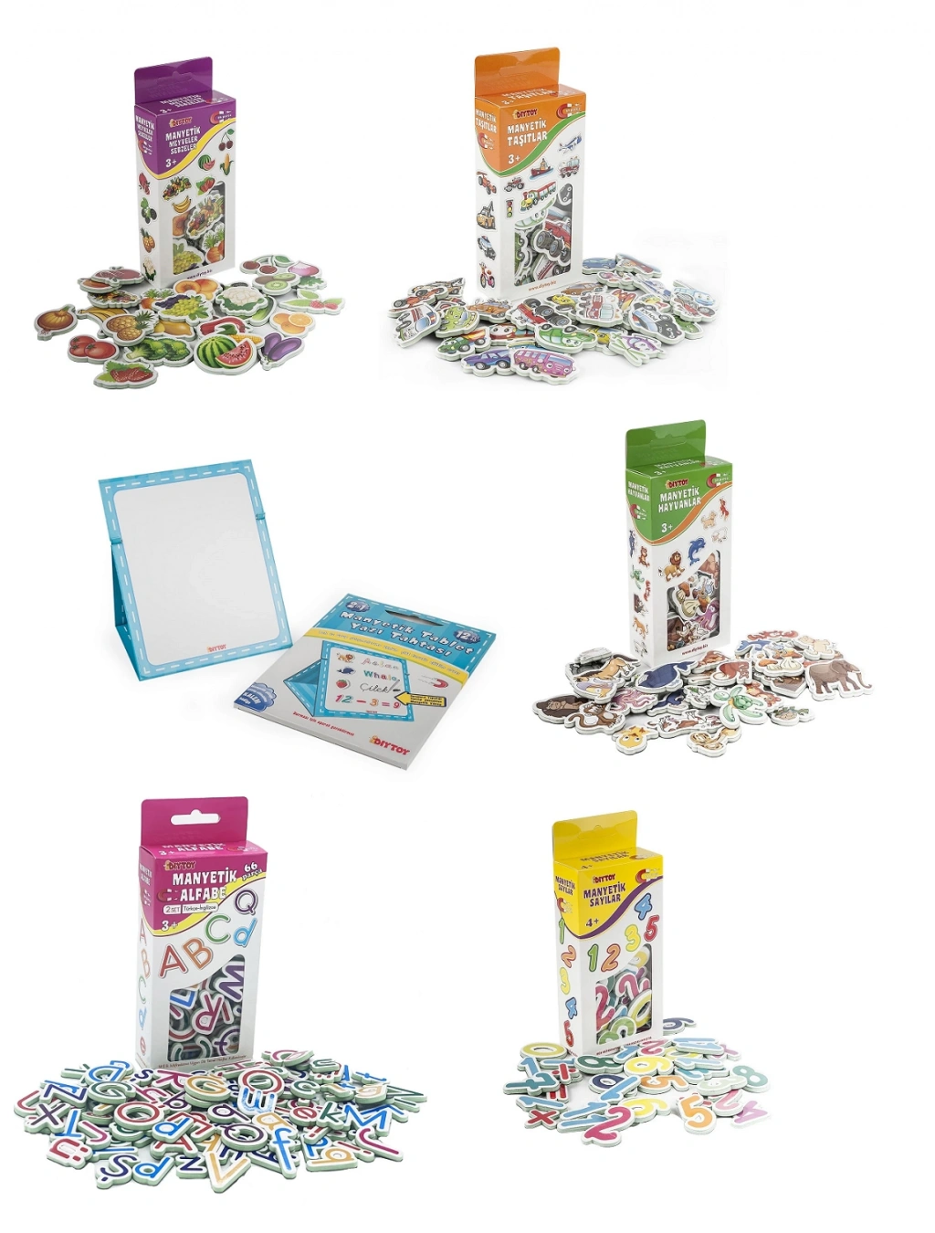 Paket içerisinde; 26 manyetik büyük harf, 26 manyetik küçük harf ve 26 manyetik resim yer almaktadır.