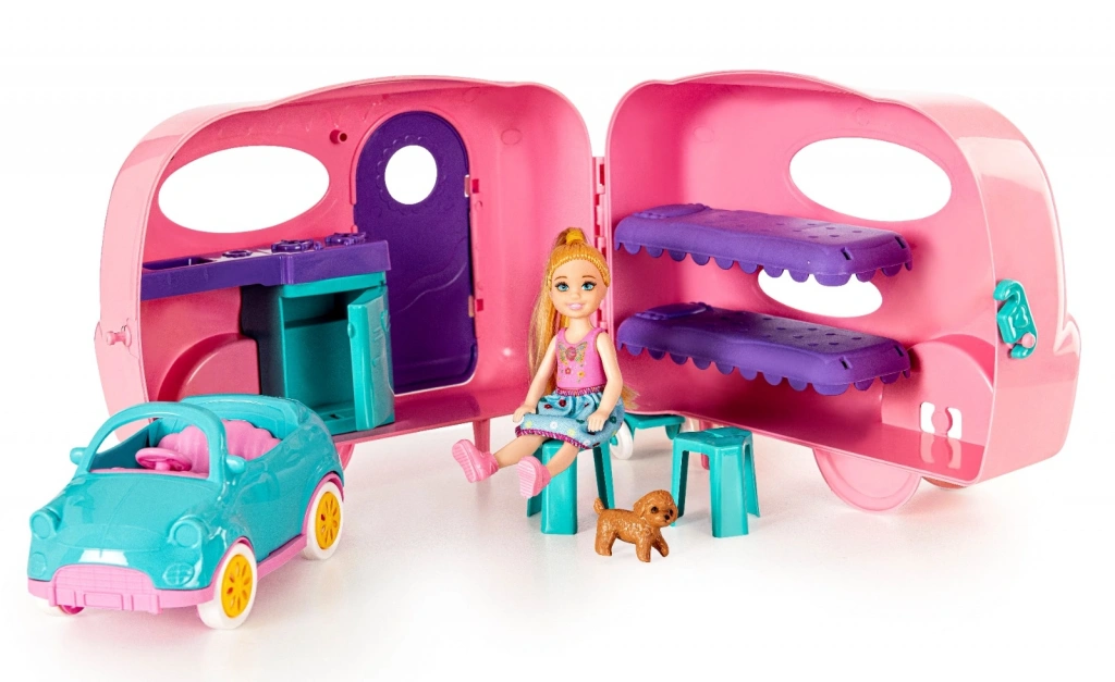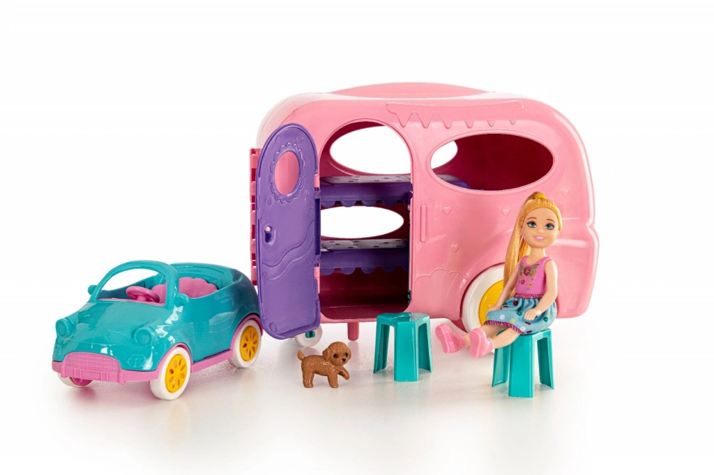 ? Karavanın kapıları açılır, içi oyun için uygundur. Çocuklar kendi kamp hikayelerini oluşturabilir!