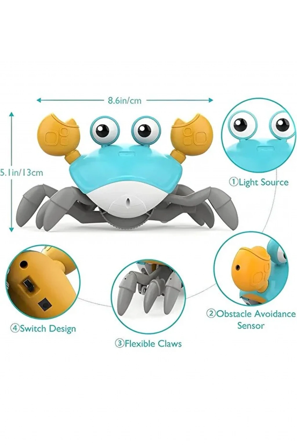 Dahili Işık ve Müzik Renkli ışık ve dinamik müzik, çocukları sürünen yengeç oyuncağıyla etkileşime çekecek.Hareket ettiğinde dinamik müzik yapacak, böylece bebeğin dikkatini artıracak ve bebeğin işitme gelişimine yardımcı olacaktır.