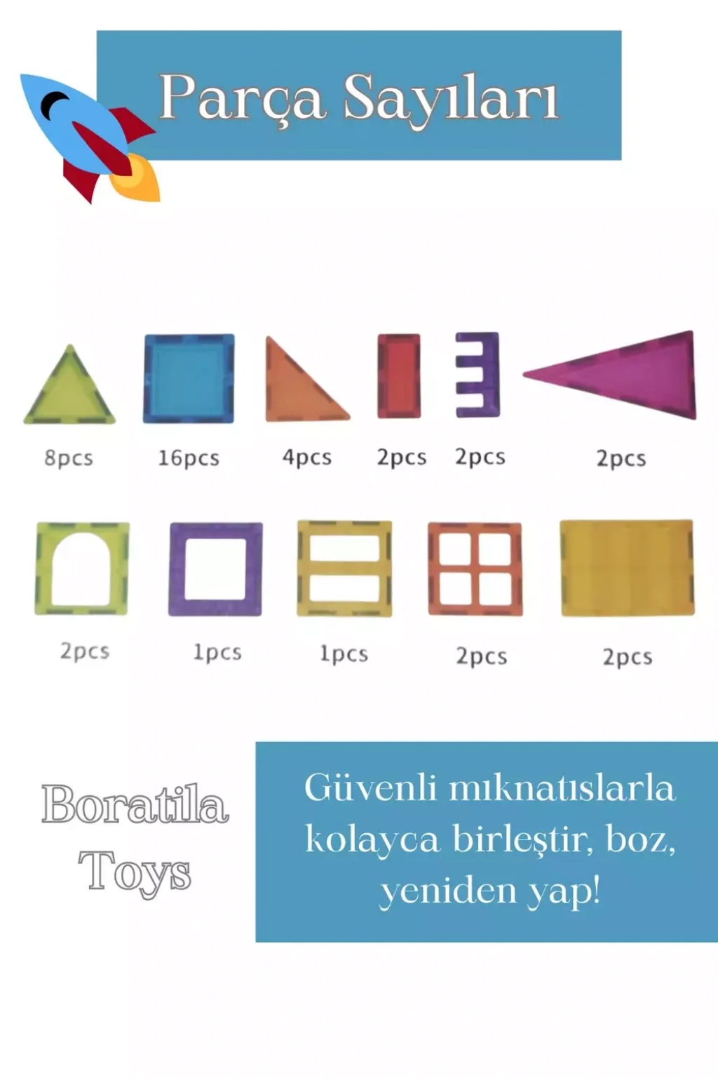 Birinci sınıf, toksik olmayan malzemelerden üretilen 4-8 yaş arası çocuklar için Manyetik yapı bloklarımız, uzun ömürlü olacak şekilde üretilmiştir ve yıllarca sürecek eğitici eğlenceyi garanti eder.