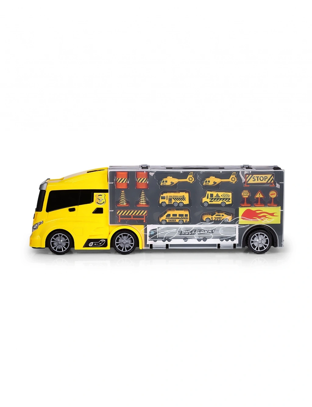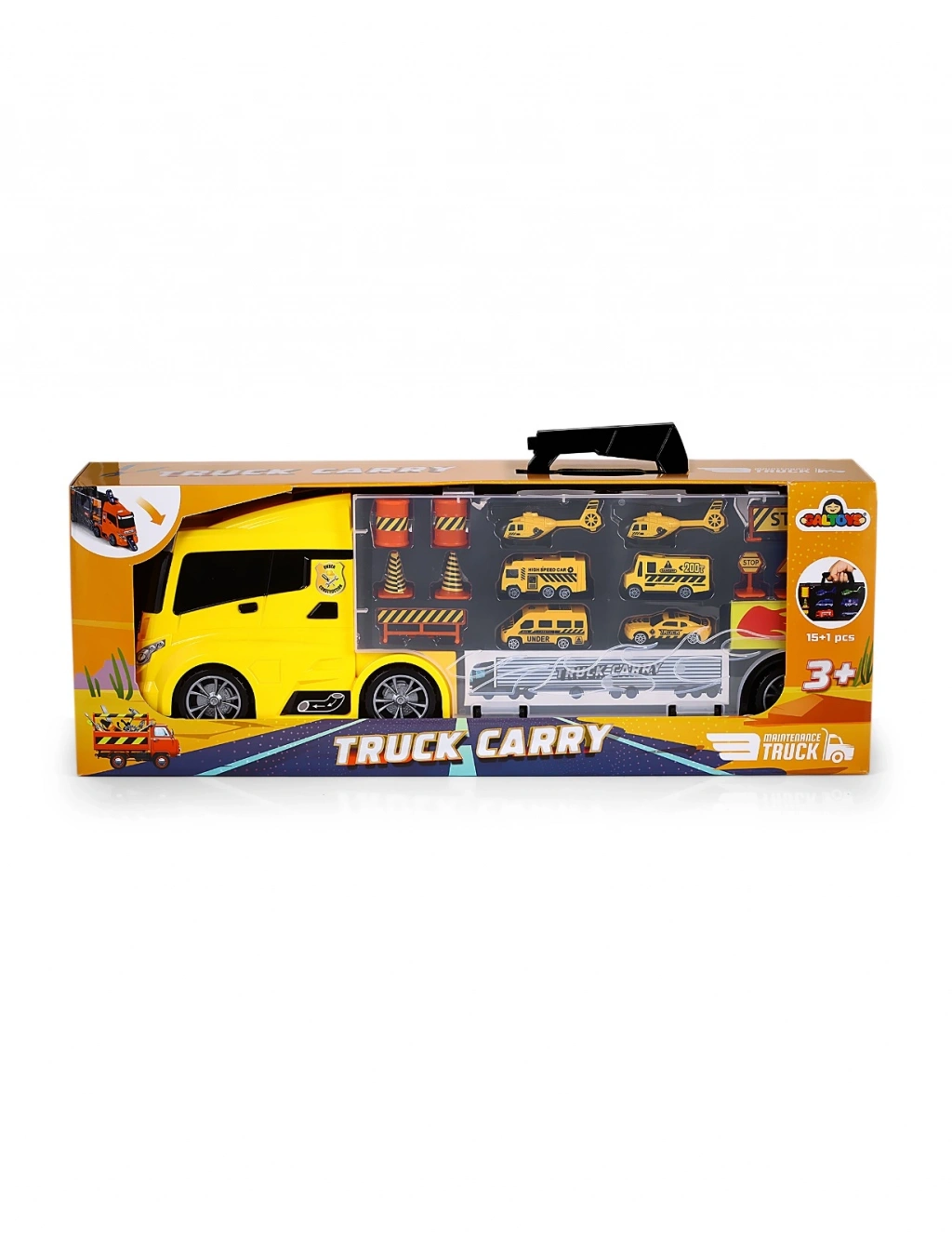 Miniklerin hayal gücünü geliştirecek harika bir oyuncak! Bu Truck Carry taşıyıcı tır seti, birbirinden eğlenceli mini araçlar ve aksesuarlarla çocuklara saatlerce keyifli oyun sunar.