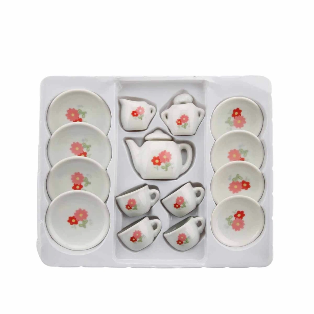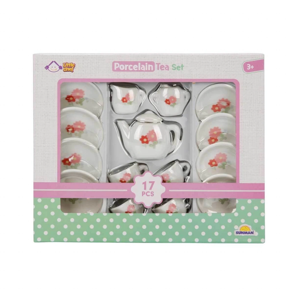 Oyuncak Porselen Çay Takımı 17 Parça Çiçek Desenli