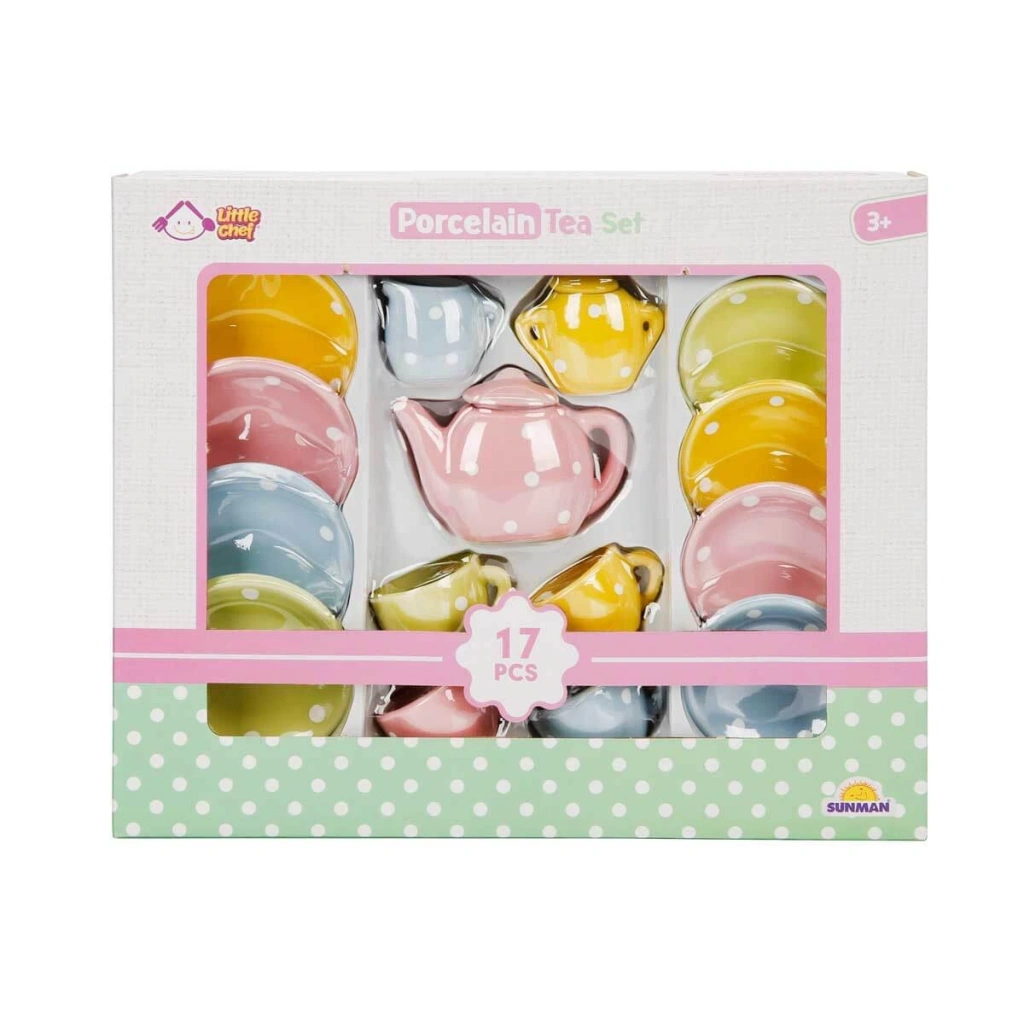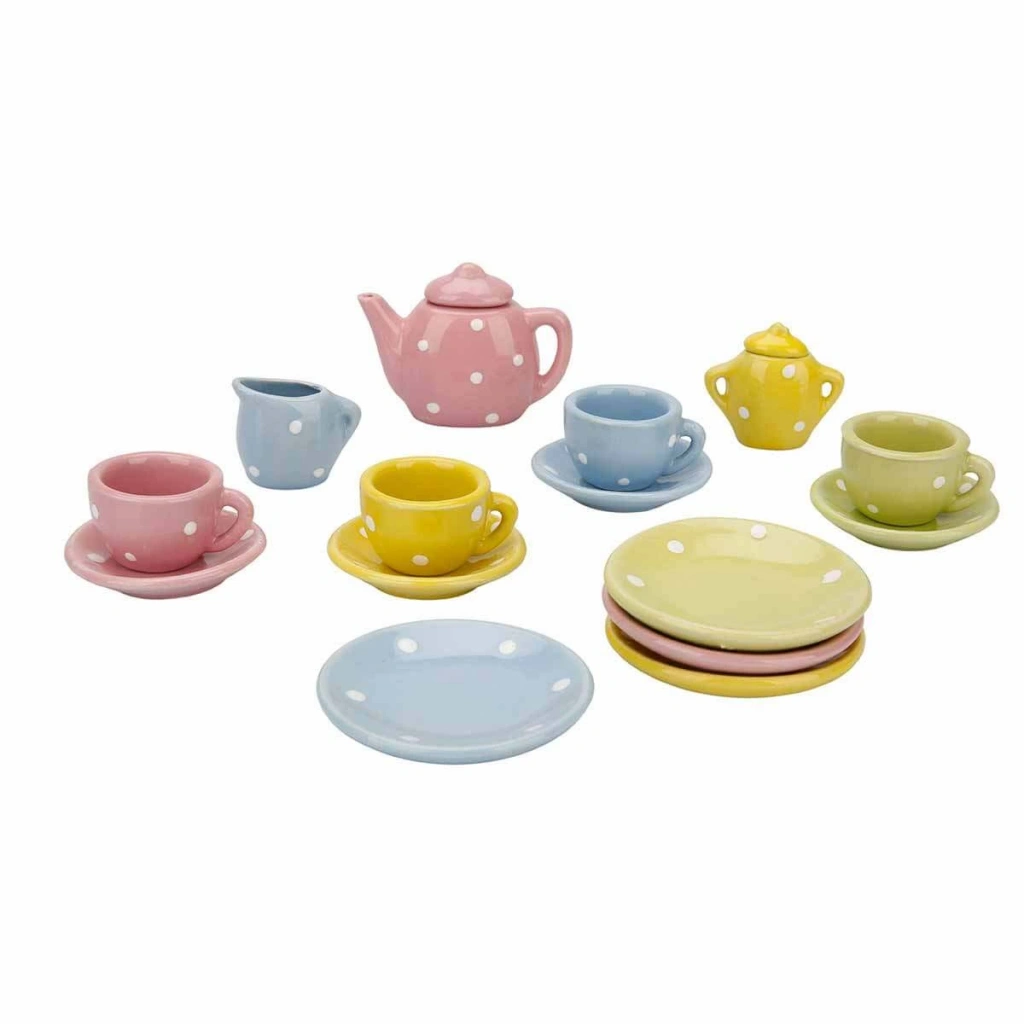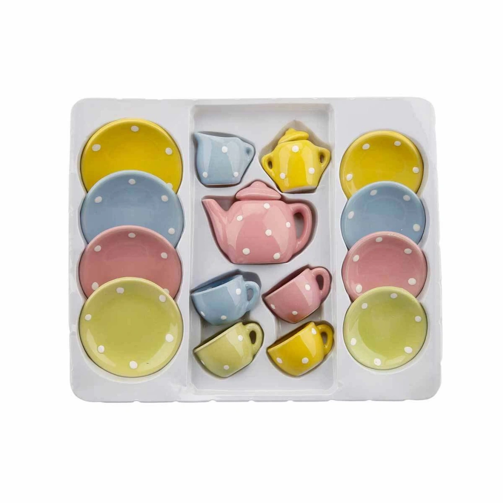 Oyuncak Porselen Çay Takımı 17 Parça Puantiye Desenli