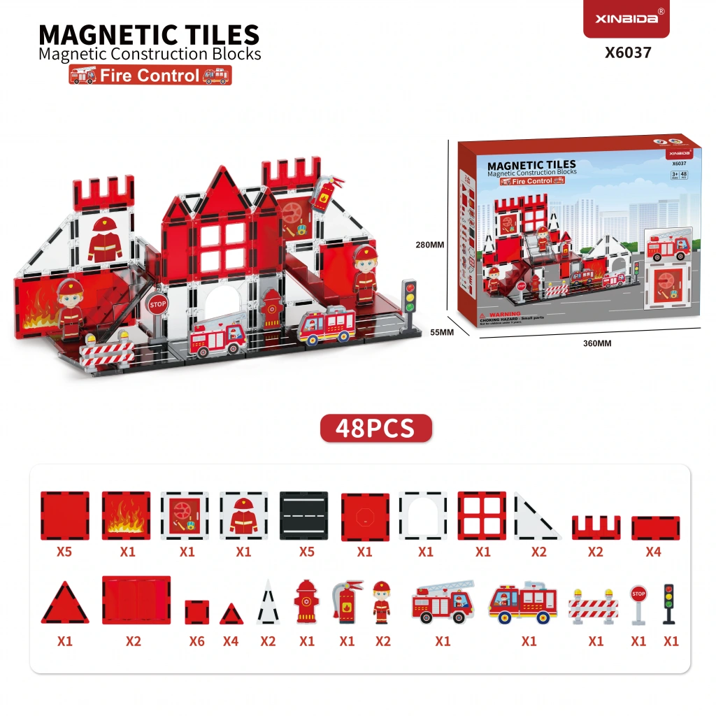 Renkli Manyetik Bloklar Fayans Yapı taşları İtfaye Serisi Eğitici Oyuncak 48 Parça