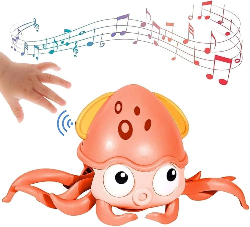 Dahili Işık ve Müzik Renkli ışık ve dinamik müzik, çocukları sürünen yengeç oyuncağıyla etkileşime çekecek