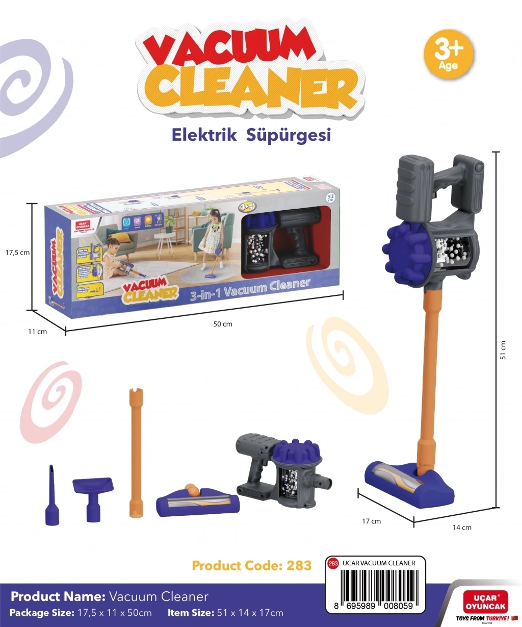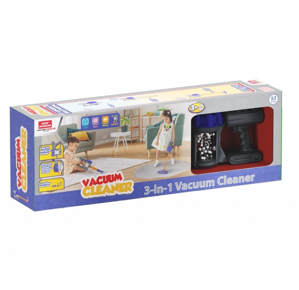 Kablosuz Oyuncak Elelktrik Süpürgesi 2 adet AAA pil ile çalışır. (Piller dahil değildir).