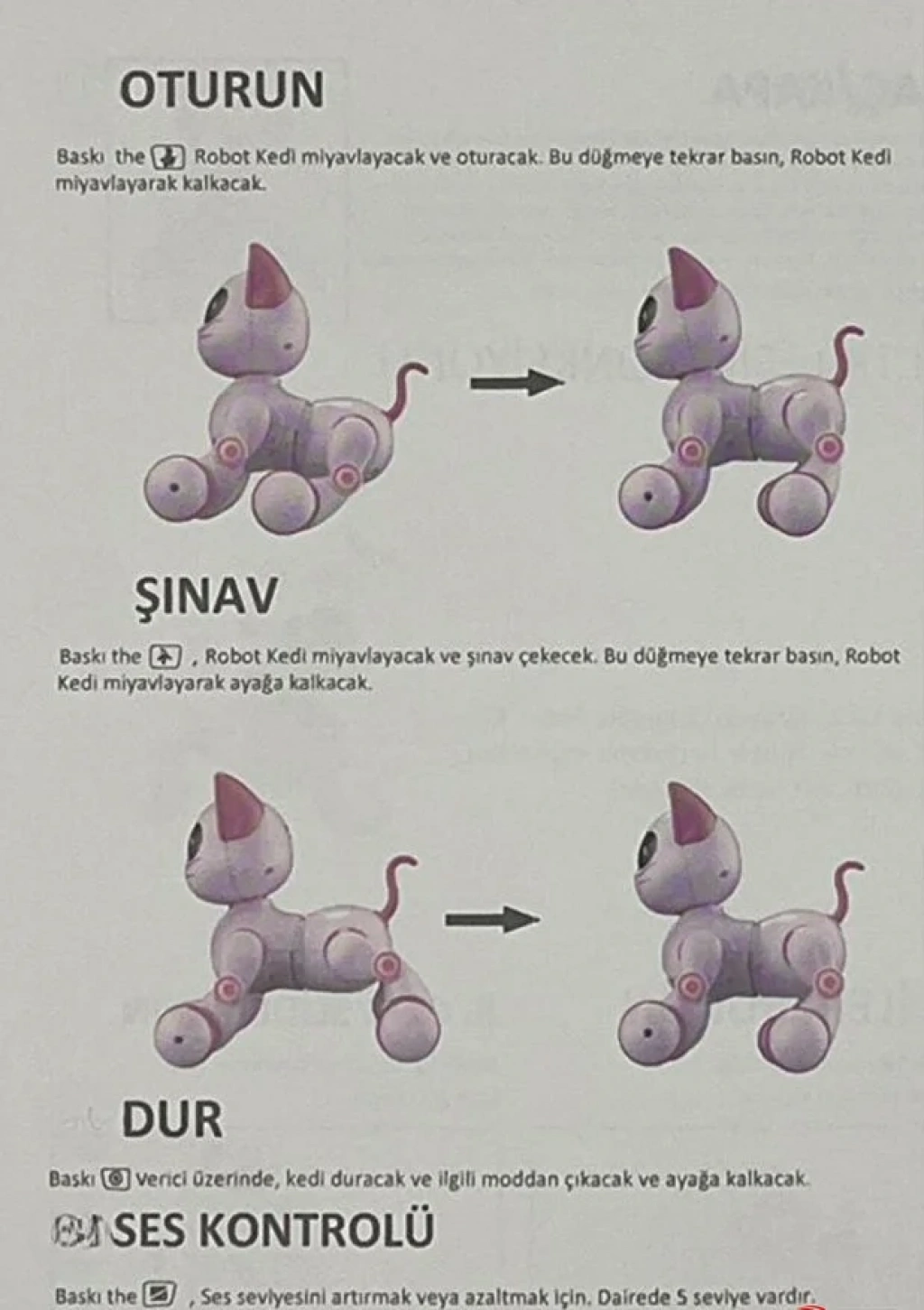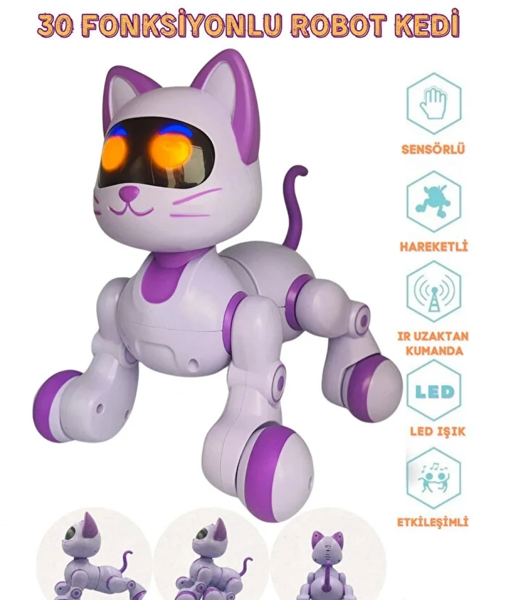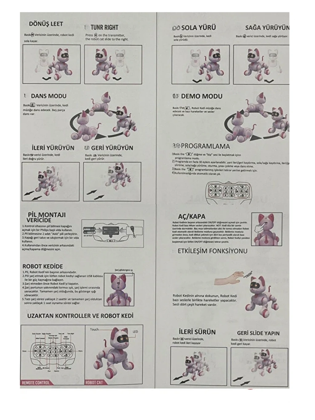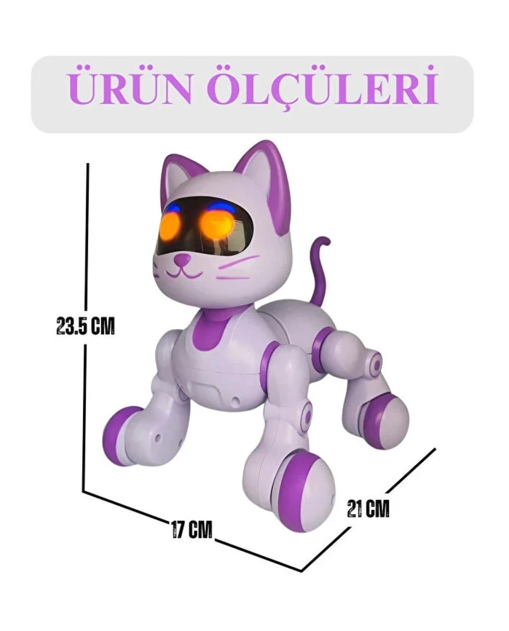•        Uzaktan Kumanda:      Kolay kullanım için tasarlanmış uzaktan kumanda ile robot kediyi rahatlıkla kontrol edebilirsiniz.